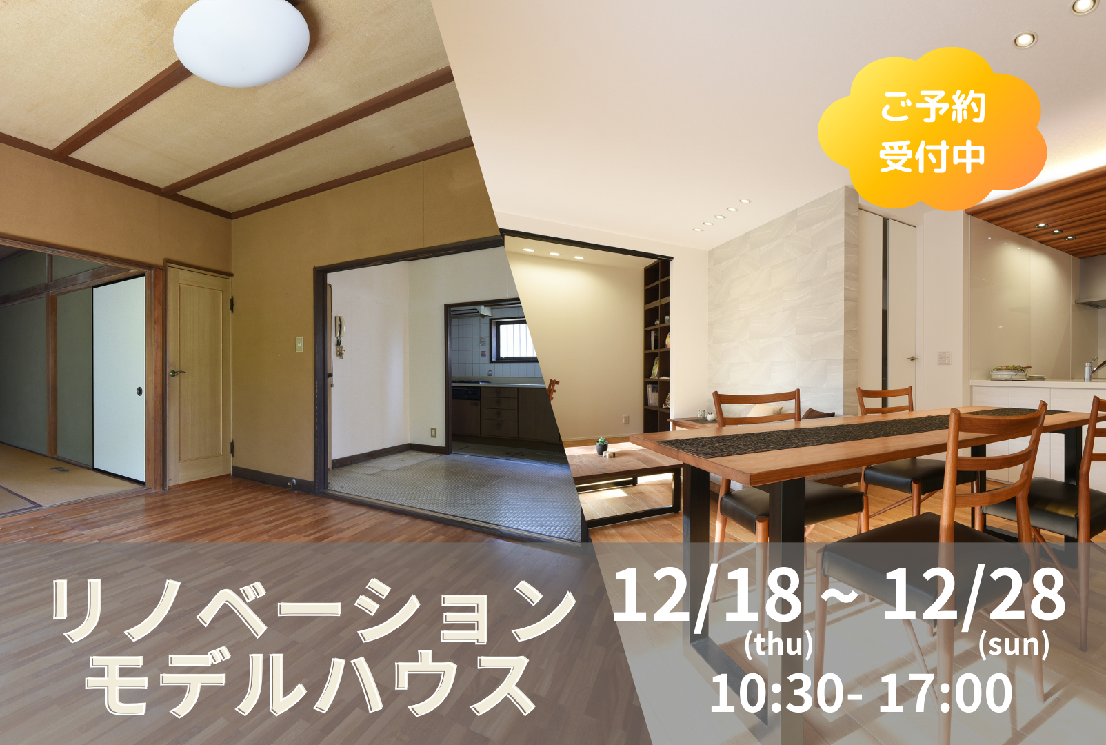 EVENT イベント・ワークショップ イベント モデルハウス Workshop イベント リノベーション相談会 開催中! 開催日 12/18(木) - 12/28(日) 【予約制】 開催場所 栃木県宇都宮市東宿郷5-8-22 View More イベントに参加する イベント 築40年!【フルリノベーション】戸祭台モデルハウス公開中♪ 開催日 12/18(木) - 12/28(日) 【予約制】 開催場所 栃木県宇都宮市戸祭台35-12 View More イベントに参加する